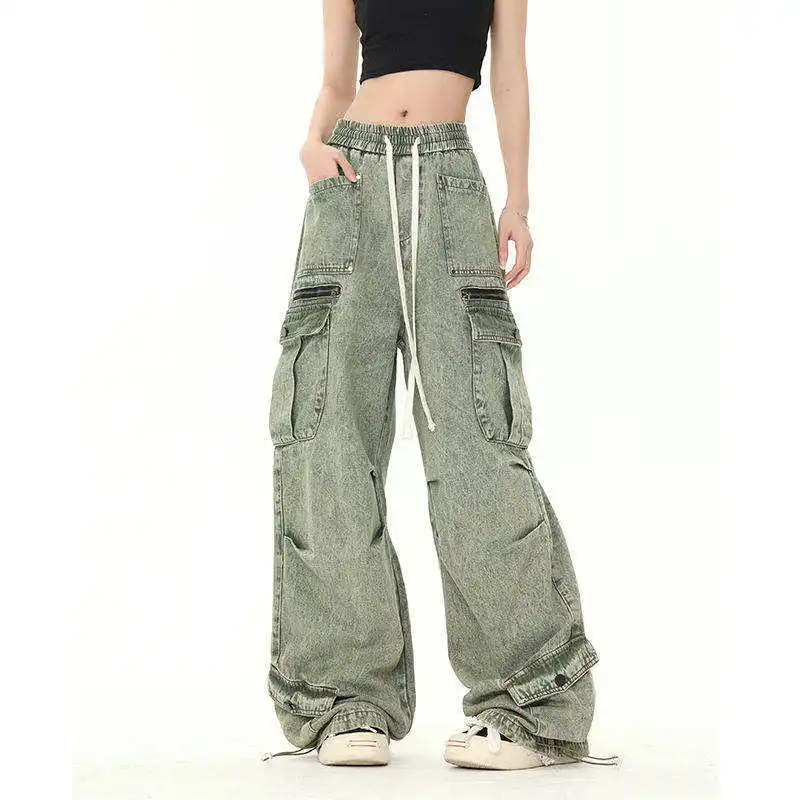 New Arrival Custom Logo Premium Women's Jeans Loose Multi-Pocket Old Denim Pants with Sexy Streetwear Casual Style Solid Pattern